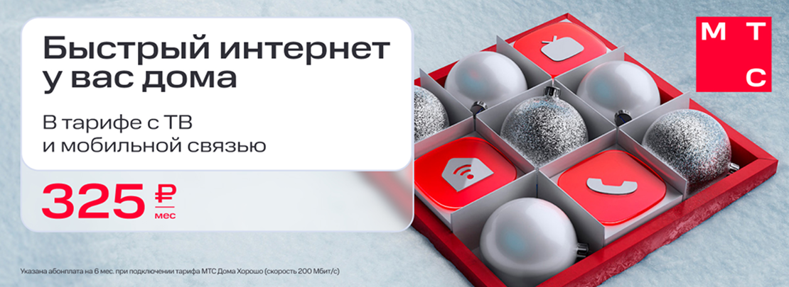 Подключите тарифы МТС Дома Супер или Дома Отлично и пользуйтесь всеми услугами по полцены целый год — отличный подарок к Новому году
